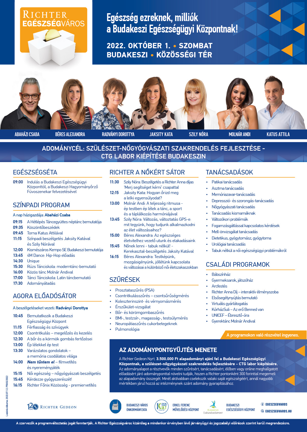 Jöjjön el családjával, és részvételével növelje a Budakeszi Egészségügyi Központnak szánt adományt! A Richter Gedeon Nyrt. 3.500.000 Ft alapadományt ajánl fel a Budakeszi Egészségügyi Központ számára, szülészet-nőgyógyászati szakrendelés fejlesztésére - CTG labor kiépítésére.